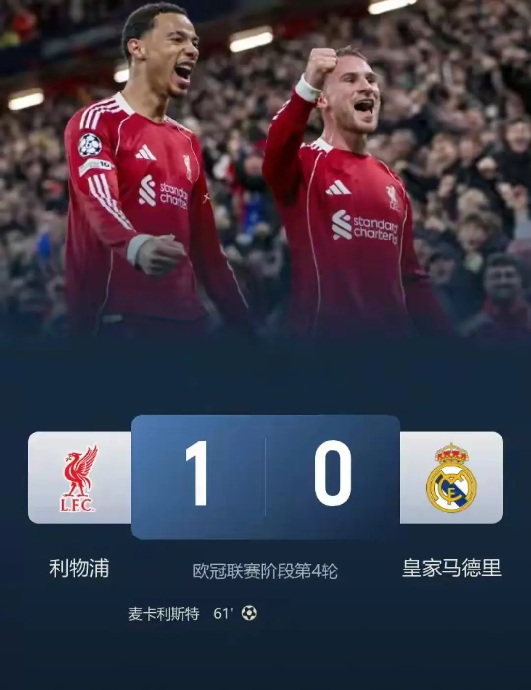 今天早晨结束的2025-26赛季欧冠联赛阶段第4轮的一场比赛中,利物浦坐镇主场安菲尔德迎战皇马,球队的阿根廷中场麦卡利斯特头球攻破库尔图瓦的十指关,安菲尔德球场59916名观众的欢呼震彻夜空,皇马本赛季欧冠首败就此诞生。这场0-1的失利绝非偶然,而是银河战舰锋线短板的集中爆发,安菲尔德球场再次成为皇马的"滑铁卢",也给主席弗洛伦蒂诺敲响了最刺耳的警钟:引进哈兰德,已是破局的唯一答案。